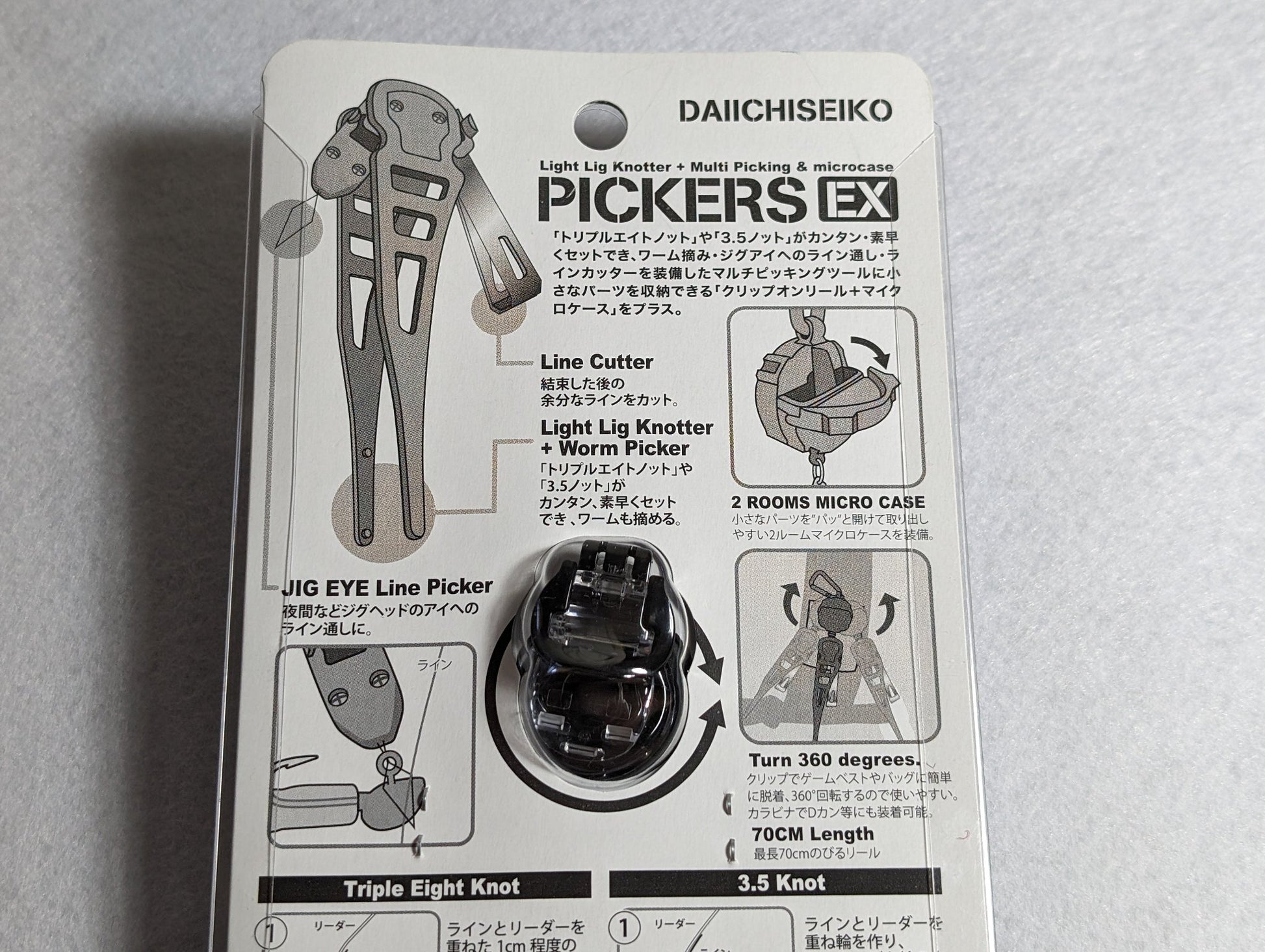 Pero eso no es todo: esta herramienta también incluye un carrete de clip y un microestuche, diseñado específicamente para hacer el nudo triple ocho y el nudo 3.5 con facilidad y rapidez. ¡Olvídate de los nudos torpes y disfruta de más tiempo pescando!